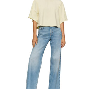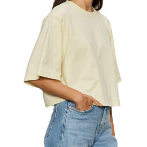 The effortless tee your summer wardrobe needs. This lightweight. semi-cropped top features a relaxed oversized fit with soft bell sleeves for that easy. elevated feel. In a fresh lemon tone. it’s the perfect throw-on piece that still looks styled whether you’re pairing it with denim. linen. or matching sets.