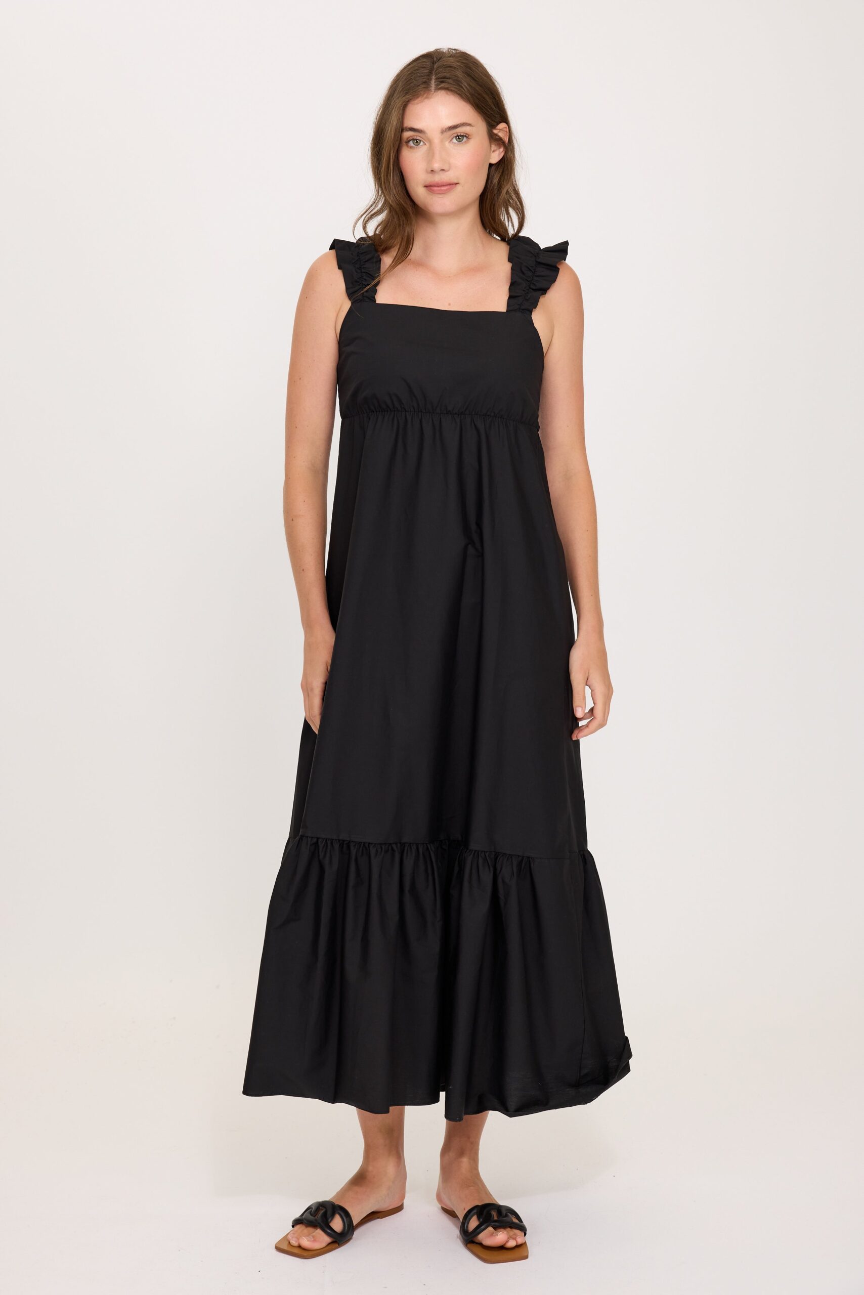 .Effortless. airy and made for sunny days.  This cotton poplin maxi dress is the definition of easy elegance.  With its lightweight feel and flattering flowy silhouette. its the kind of piece you can throw on and instantly feel put together.  Perfect for everything from weekend brunch to vacation nights.
