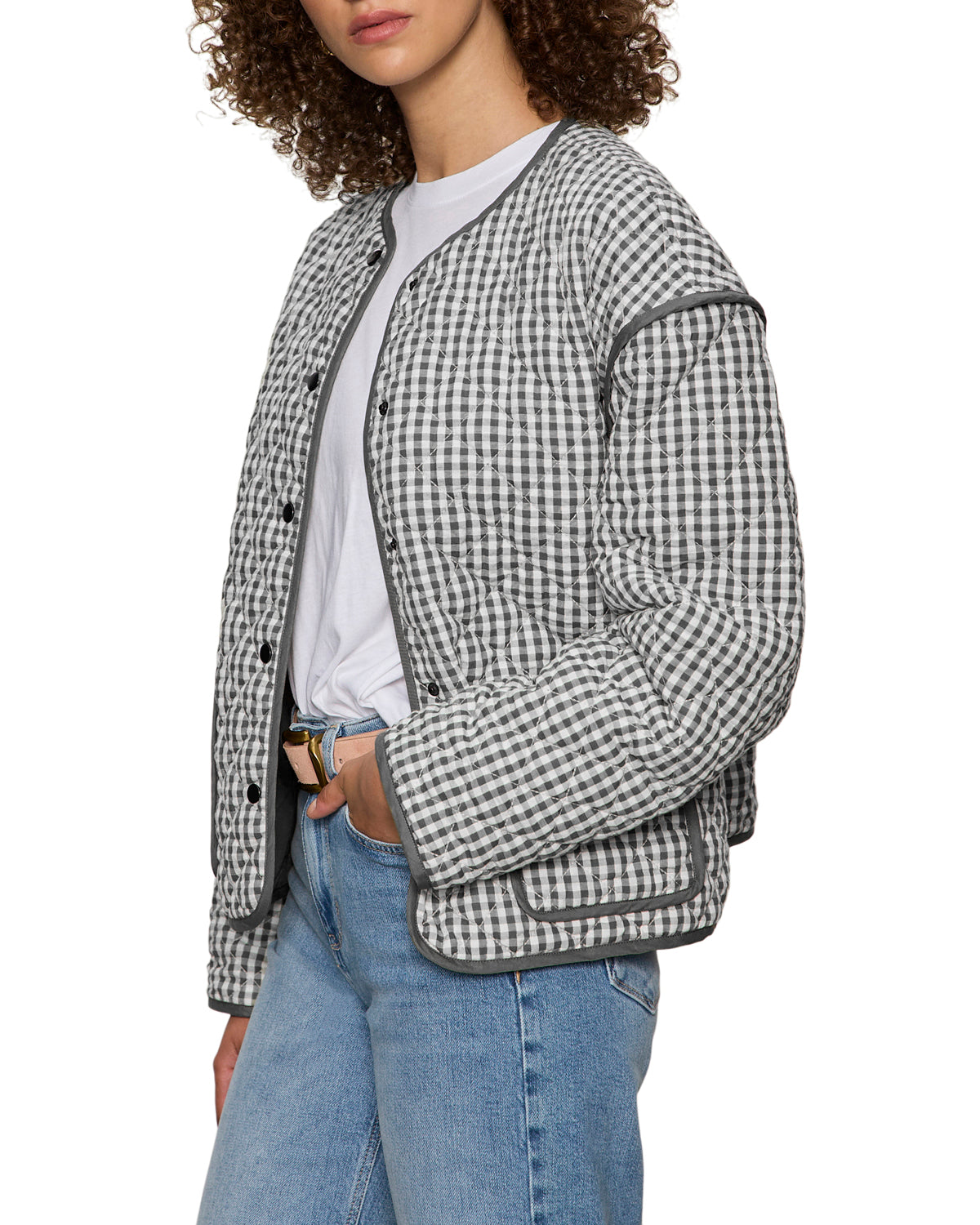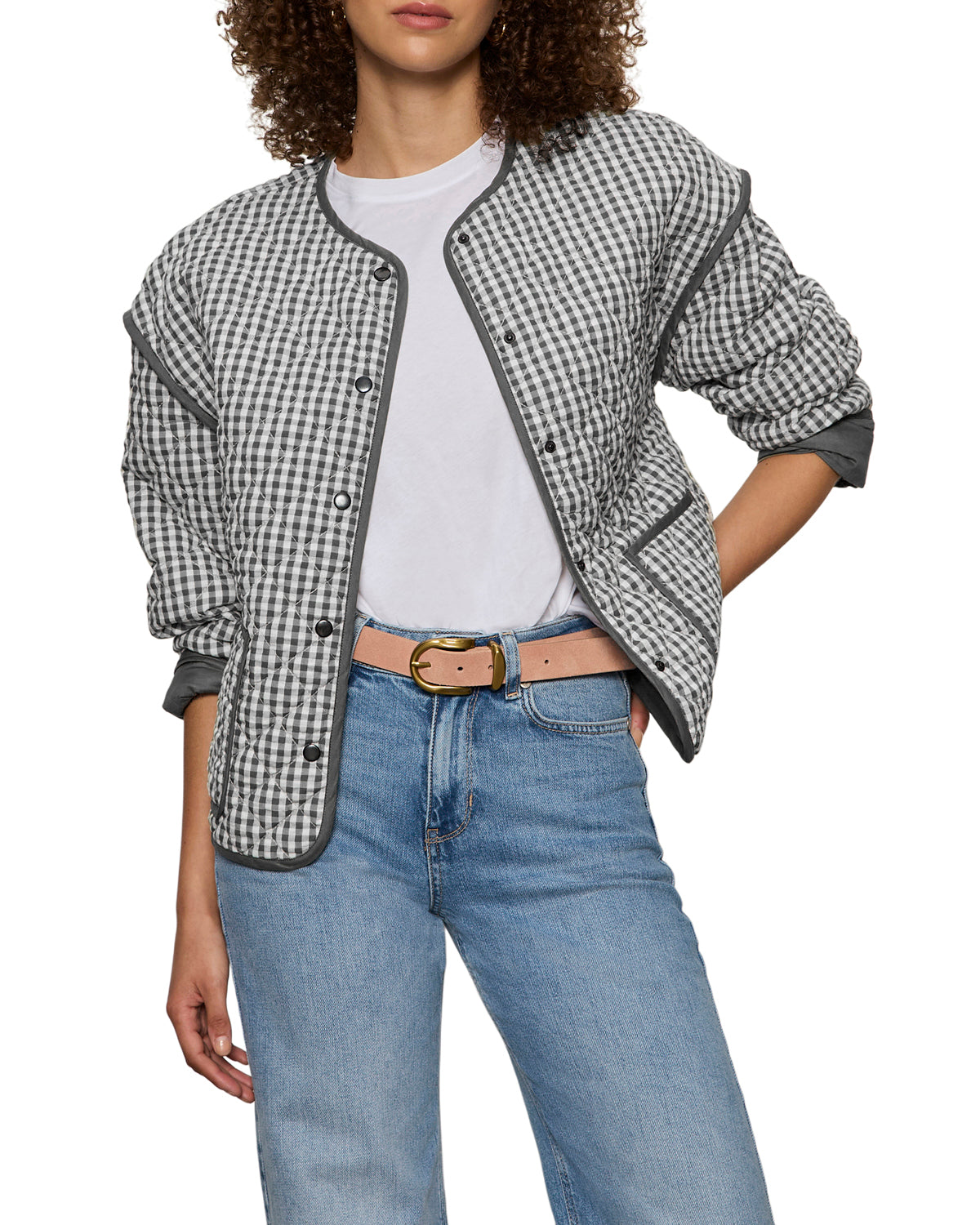 The perfect lightweight layer you’ll reach for again and again. This quilted gingham jacket adds just the right amount of structure while still feeling effortless and easy. Polished enough to elevate your outfit. relaxed enough for everyday wear.
