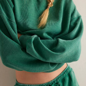 Features: Comfy cotton blend. drop-shoulder long sleeves. crew neckline. kangaroo pocket
