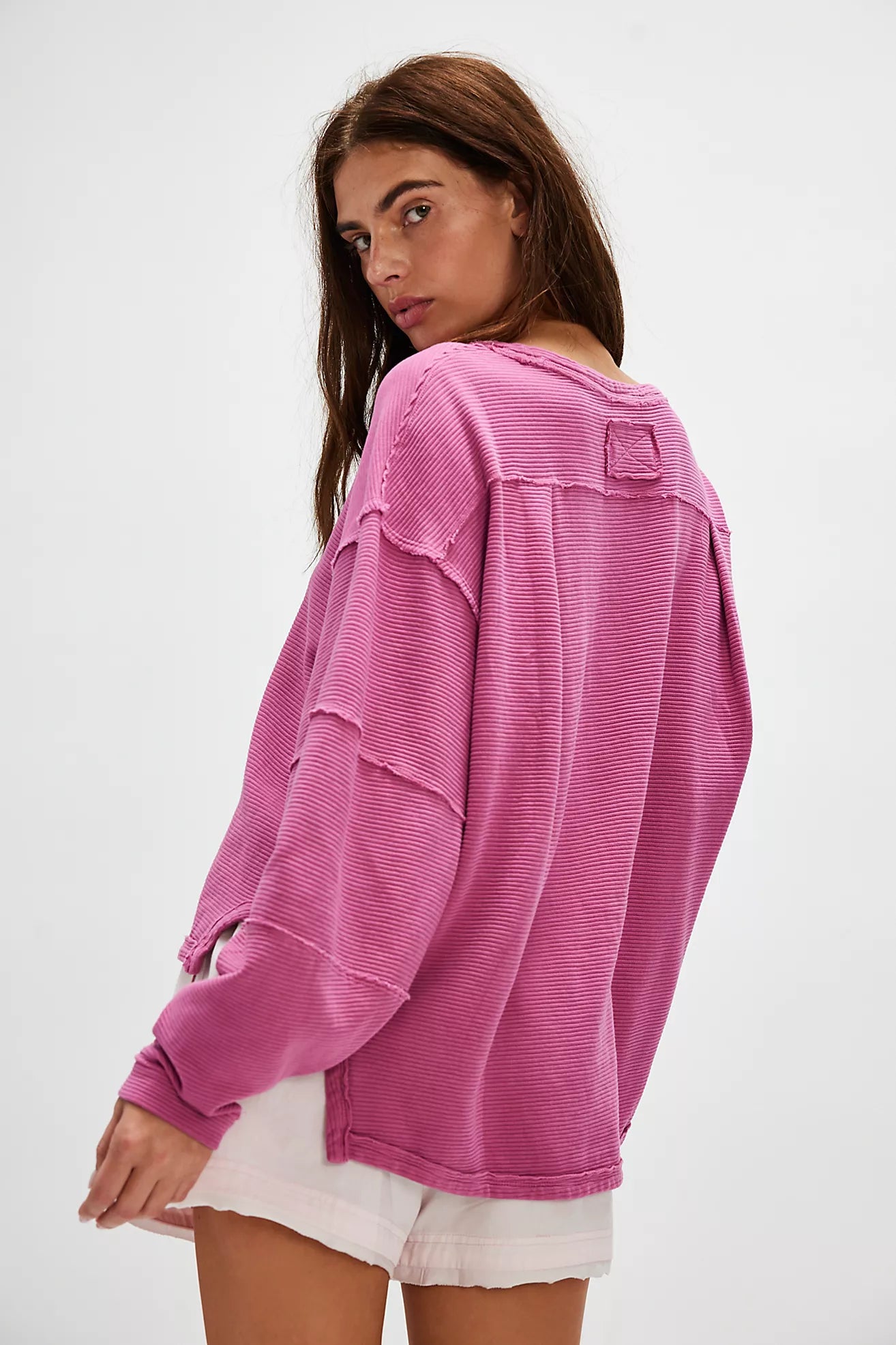 An elevated take on the classic tee. this long-sleeve from our We The Free collection features a ribbed fabrication and slouchy silhouette with defined seams and a scoop-neckline.