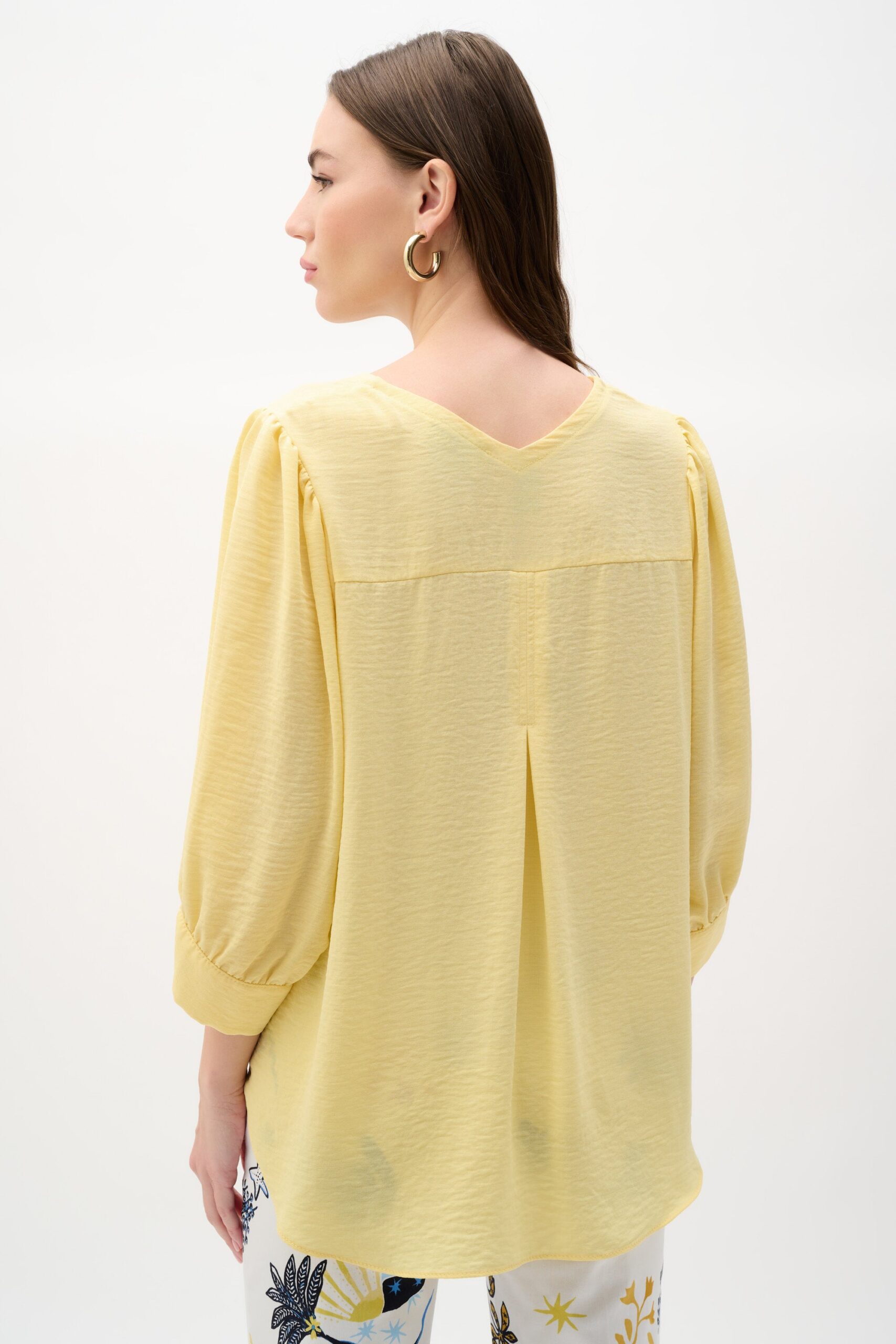 Woven Gauze Trapeze Top With Puff Sleeves | Mellow Yellow